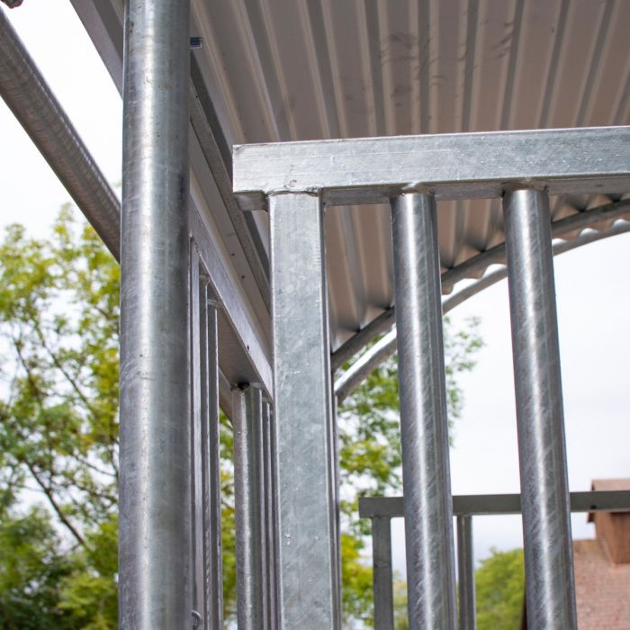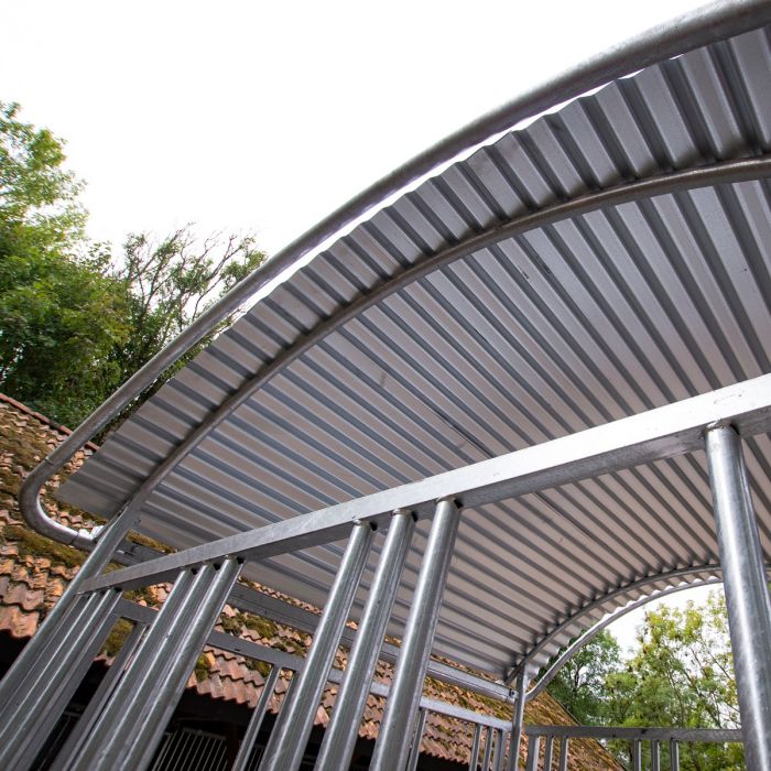 Taget er justerbart i højden for at yde den bedste beskyttelse mod nedbør. Taget er også som standard udstyret med en beskyttelsesbøjle rundt om hele taget for at øge hestens sikkerhed.
