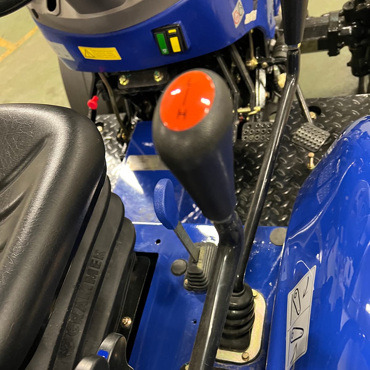 De hængende pedaler gør det nemmere at stige ind og ud af traktoren, og den isolerende måtte giver et lavere lydniveau på kun 76 dB.